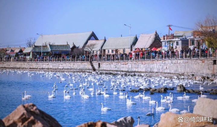 烟墩角村位于山东省威海市荣成市俚岛镇,以冬日的大天鹅越冬景不雅和独到的海草房建筑为中枢,组成了一幅东谈主与当然谐和共生的秀好意思画卷。
