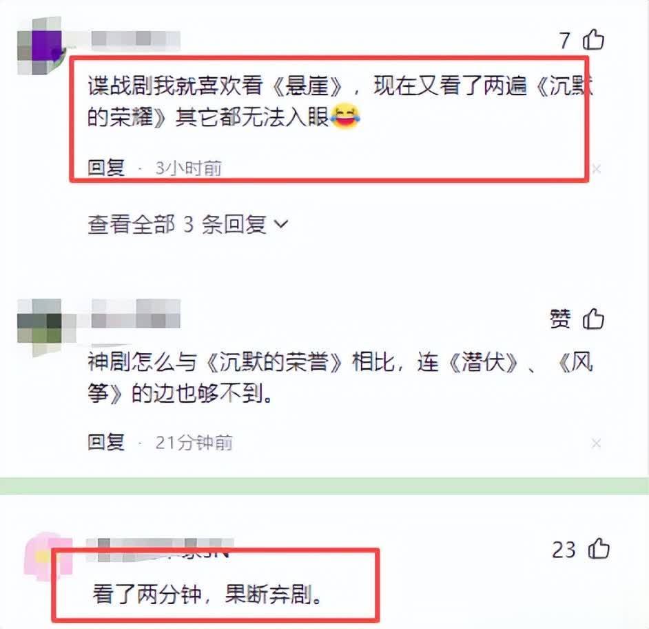 大家示意,看了两分钟,就弃剧了,跟《千里默的荣耀》没法比,更别说夙昔的《陡壁》了。