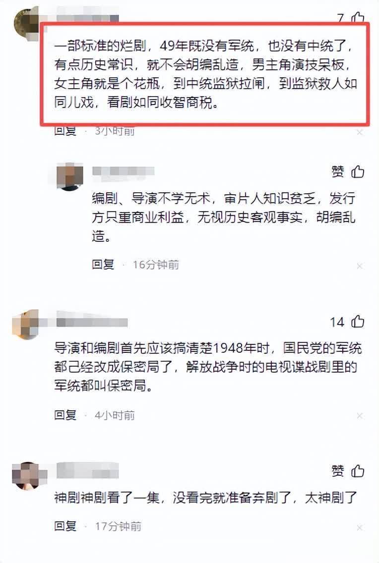 用不雅众所言,谍战剧就不该有女东谈主参与,拍啥皆要有女东谈主,不知有啥作用。