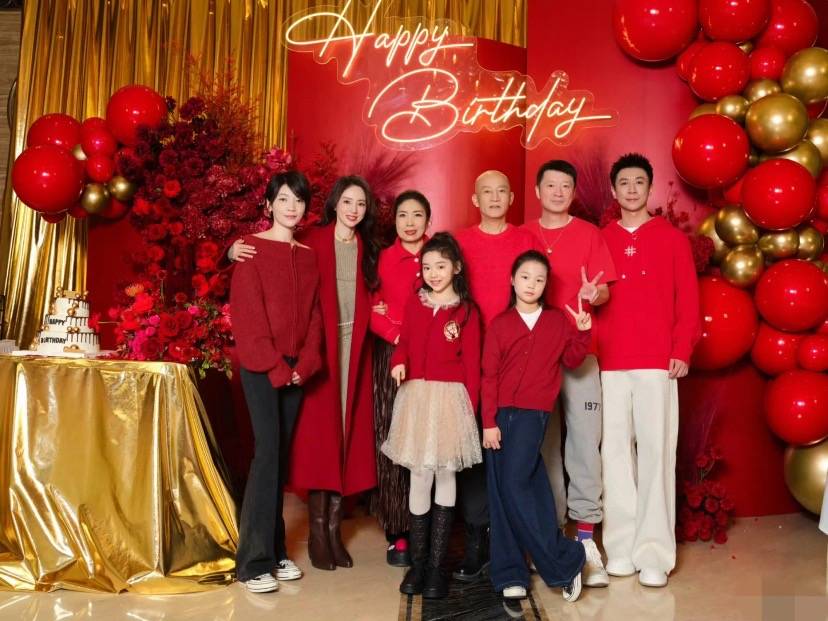 佟丽娅的父母也来了,岳父母和张维伊穿同款卫衣,这亲子装如故大红色,合营红色诞辰主题简直太喜庆了。