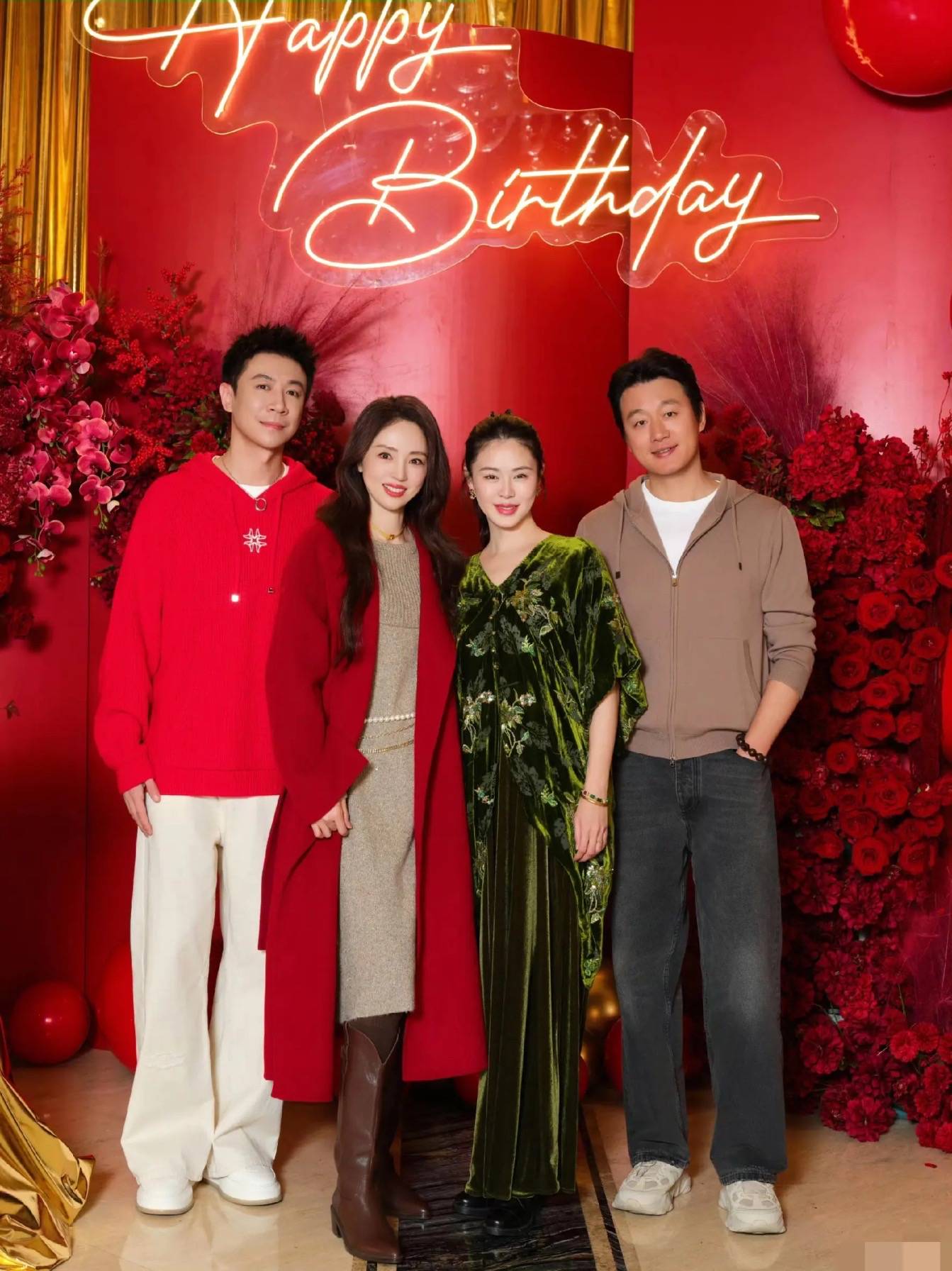 张维伊最近在演话剧,他也有我方的糊口圈子,好一又友们王人穿红衣到场,给张维伊庆生,简直太有排面了。