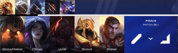 中单队采选:Faker塞恩、Scout杰斯、Ucal沙皇、Chovy卡莎、ShowMaker泰坦
