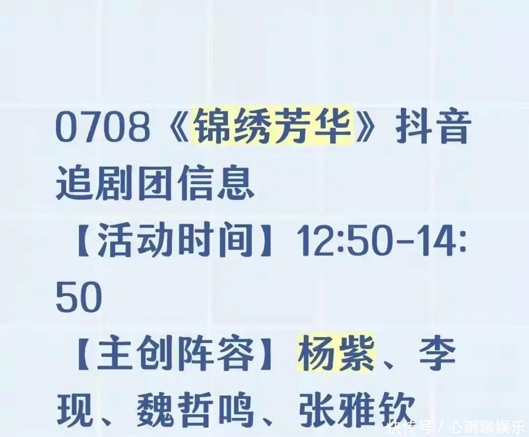 其实吧,这事儿真巧!你没看剧方哪里放的真料吗?就今天,东谈主家杨紫在抖音直播1250到1450,然后微博追剧团下昼310开整!好家伙,我承诺得昨晚齐没睡好觉。唉不说了,想想齐快泪奔——这姐们儿,我猜是昨晚就飞追思了吧?好想见见她啊!牢记前次追星会,我在现场列队还差点绊倒,出国相了哈,不外这嗅觉就跟过年似的热乎!