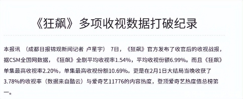 此番阐扬令《狂飙》积累的好感大幅流失。