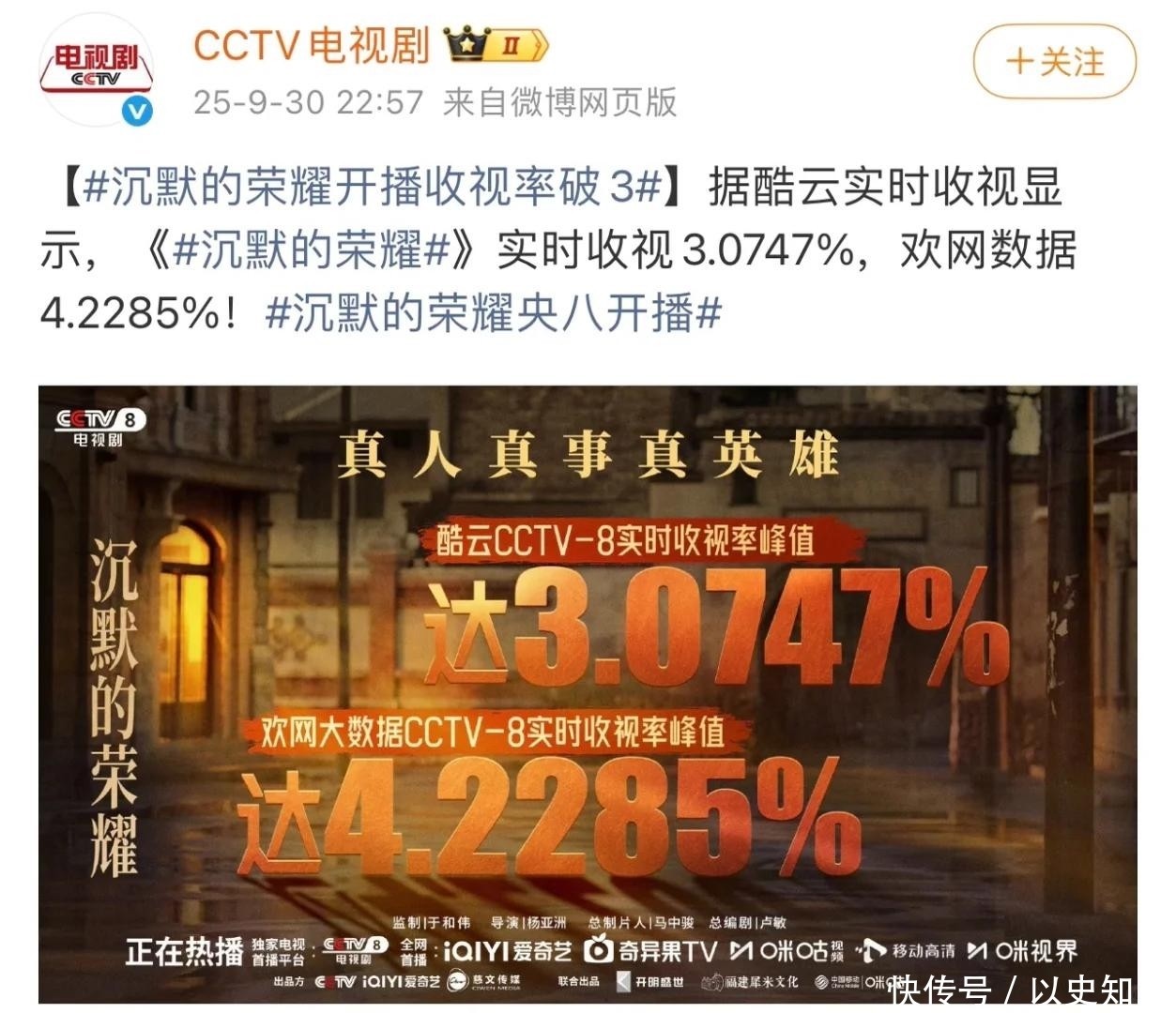 该剧首播仅一集,热度值连忙龙套3亿大关,刷新央八开播最快破3的历史记载。
