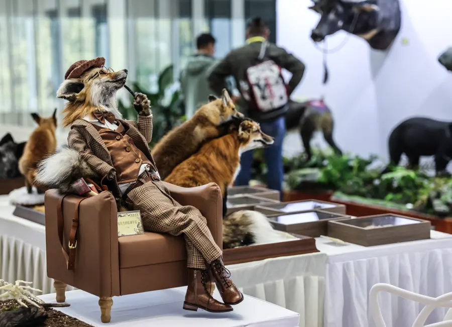 图为这款名为“狐先生的棕调午后”作品,让狐狸标本穿上服装,并作念出拟东谈主化的动作,惟妙惟肖,为标本赋予了戏剧性和灵魂。