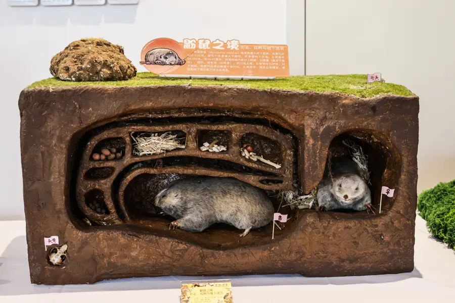 图为现场站催的“鼢鼠之境阵势、结构与地下迷宫”标本作品。